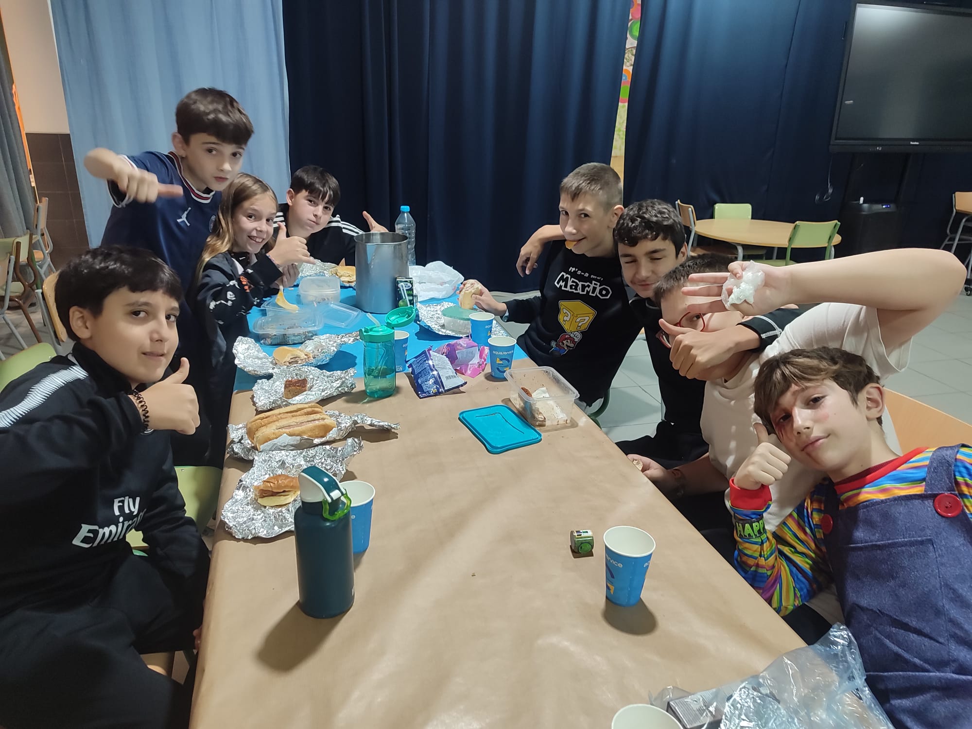 El míercoles 29 de octubre dimos el pistoletazo de salida a la celebración de halloween con la pernocta de los alumnos de 6º de primaria. Cargados con sus maletas, disfraces y cenas terroríficas realizaron diferentes actividades como scape room, juegos, bailes y película de terror (pero poco).